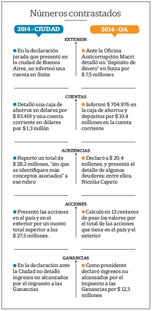 comparativo" de las declaraciones juradas de Macri correspondientes a 2014