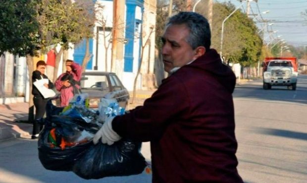 salió a recolectar la basura de los vecinos del municipio frente al paro que