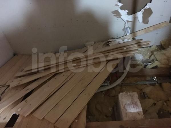 El escondite es de difícil acceso y está debajo de los tanques de agua, aunque es "muy precario", informaron las fuentes. Consta de un falso entrepiso elaborado con listones de madera, y el espacio ocupa 3 metros de largo por 1,5 metros de ancho, por 40 centímetros de profundidad.