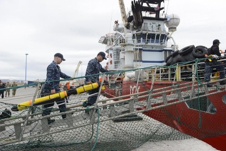 Este barco lleva cuatro vehículos sumergibles no tripulados (un Bluefin 12D y tres Iver 580), todos operados por el Escuadrón 1 de Vehículos Sumergibles No Tripulados de la Marina de Estados Unidos. Estos equipos hacen un escaneo del fondo marino para buscar el submarino, o al menos rastros o señales de alerta que haya podido dejar a su paso.