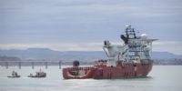 Aunque ayer se especulaba con la posibilidad de que la misión saliera durante la madrugada, recién al mediodía se terminaron de cargar las provisiones de alimentos. El Skandi Patagonia fue acompañado por dos barcos guía para salir del puerto.