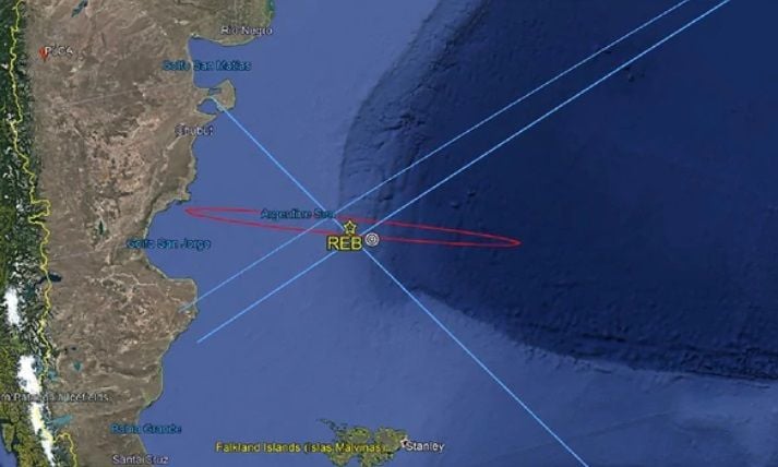 Así, el informe señaló que "los resultados emergentes fueron la estimación continua del rumbo de las series de tiempo de hidrófonos recibidas en las estaciones H04S, H10N y H10S. La ruta geodésica correspondiente al rumbo estimado para cada estación se analizó para visualizar una posible intersección que indicaría la ubicación de un evento. Esta ubicación estimada y el tiempo de llegada de señal asociado se compararon con la ubicación asumida en función de la última comunicación con el submarino. La inspección de los datos se limitó a las señales que tenían una incidencia estimada dentro de las vinculadas a la ubicación de salida y destino".