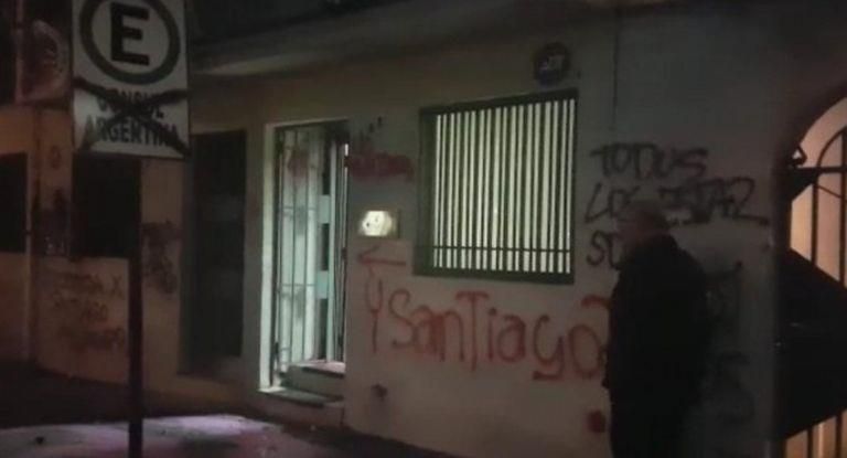 Los individuos rompieron ventanales y dejaron consignas alusivas a Santiago Maldonado.