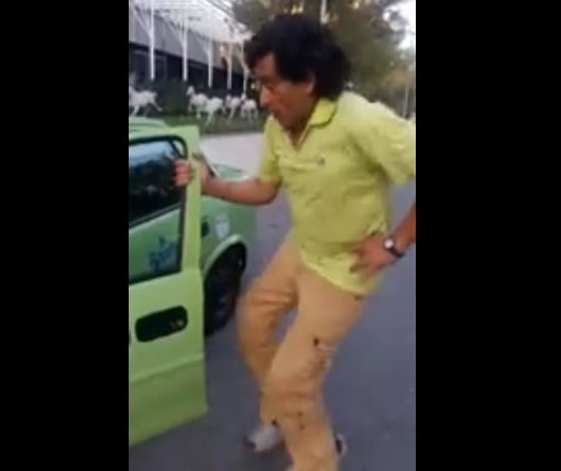 El hombre, con una simpatía y desprejuicio total, sube la música de su móvil, se desabrocha el cinturón de seguridad y se pone a bailar con la puerta del auto como compañera, mientras algunos automovilistas tocan bocina celebrando la buena onda. Diario Dia a Día.