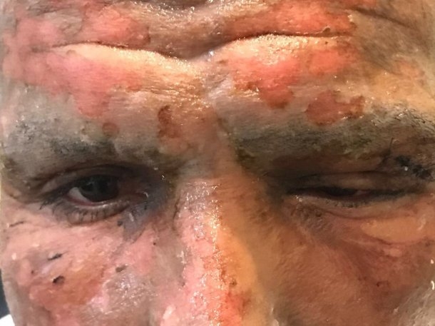 El periodista uruguayo Julio Ríos publicó en su cuenta de Twitter la imagen del ex delantero de Boca Lucas Viatri tras el accidente que sufrió durante los festejos de Navidad, cuando sufrió quemaduras a causa de la pirotecnia.