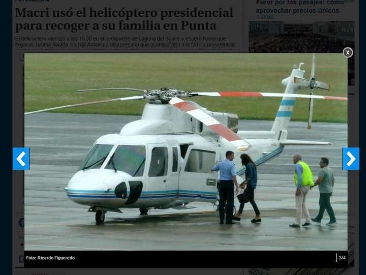 Mauricio Macri envió hoy al helicóptero presidencial a recoger a su esposa, Juliana Awada, y a la hija de ambos, Antonia, al aeropuerto de Punta del Este, según informó el diario uruguayo El País.