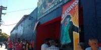 portón de ingreso, junto a una gigantografía del artista que se colgó allí.