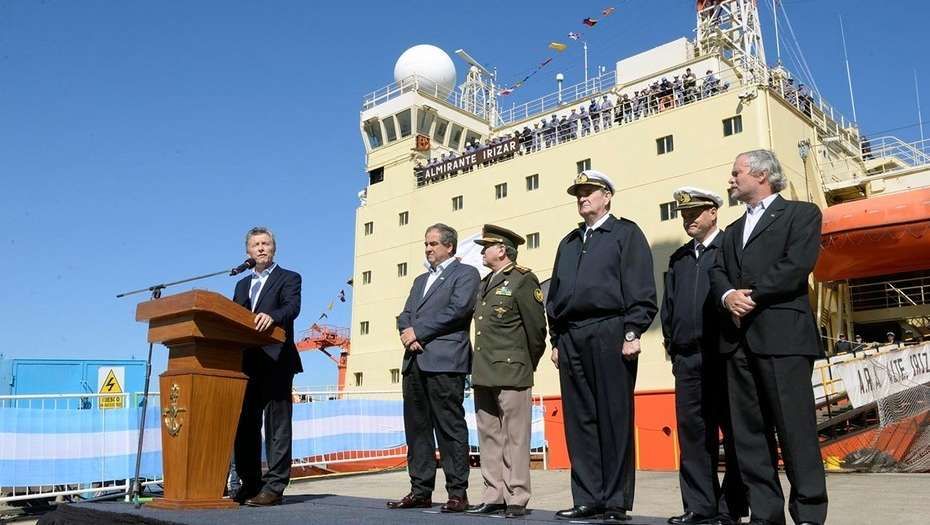 venía diciendo Macri, con el rompehielos a sus espaldas.
