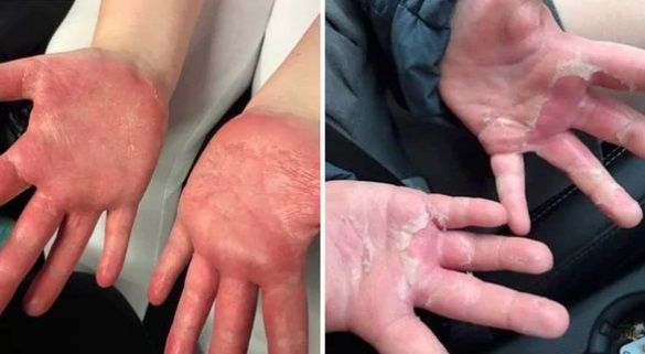 "Comenzó con ampollas, luego su piel se peló y ahora está quemada por quemaduras químicas. No dejes que hagan esto. No hay advertencias en estos canales de YouTube en absoluto".