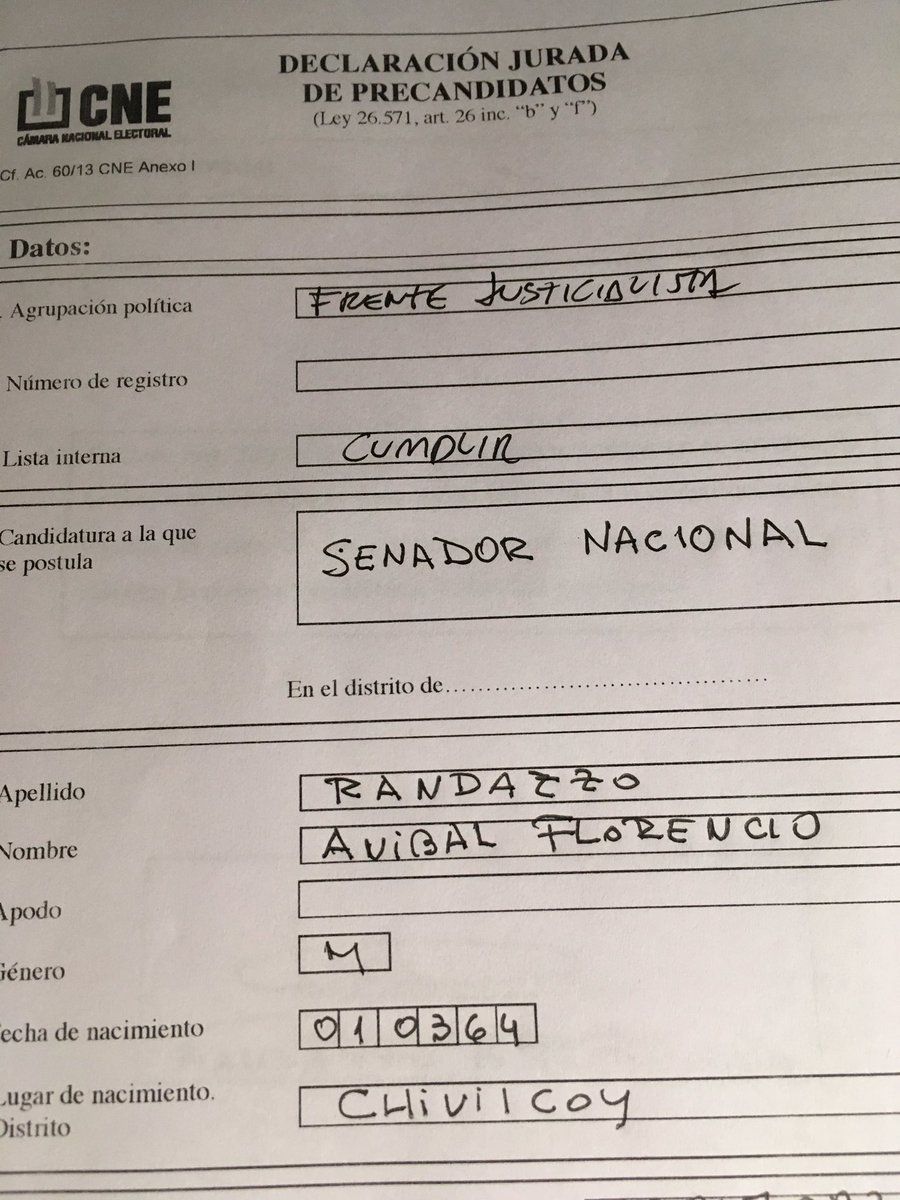 su precandidatura a senador por la provincia de Buenos Aires con su propia