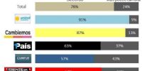 Los candidatos del FpV predominan entre los menores de 49 años y entre los hombres, mientras que los de Cambiemos se imponen entre los mayores de 50 años y entre las mujeres.