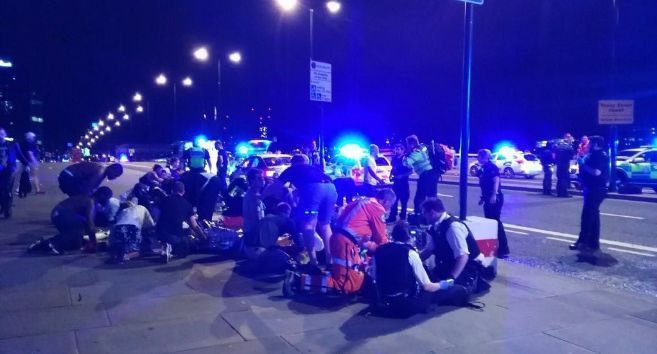 Tres hombres atropellaron con su furgoneta a los transeúntes que caminaban por el famoso London Bridge, el Puente de Londres, antes de abandonar el vehículo y lanzarse a acuchillar a gente en Borough Market, una zona llena de bares y restaurantes en torno al mercado.