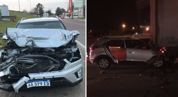 "Me distraje y terminé debajo de un camión. Cinturón y airbag me salvaron la vida. Ni un rasguño. El caos en la Panamericana fue mi culpa", escribió el periodista, que además subió fotos del estado en que quedó su camioneta Hyundai Creta.