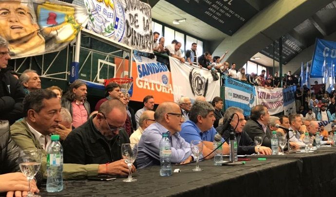 Bajo el título "Por la culturadel trabajo y el pleno empleo. Por le crecimiento productivo con inclusión social. Por la defensa de la industria nacional", la CGT presentó un duro documento contra el gobierno nacional, aprobado por el plenario de secretario generales realizado este viernes en el Microestadio de Ferro.