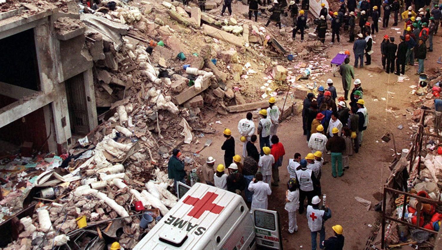 El ataque terrorista con explosivos demolió, el 18 de julio de 1994, el edificio de la mutual judía en la calle porteña Pasteur al 600 y mató a 85 personas y causó unos 300 heridos.