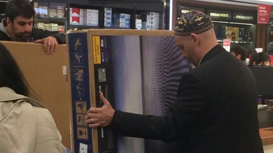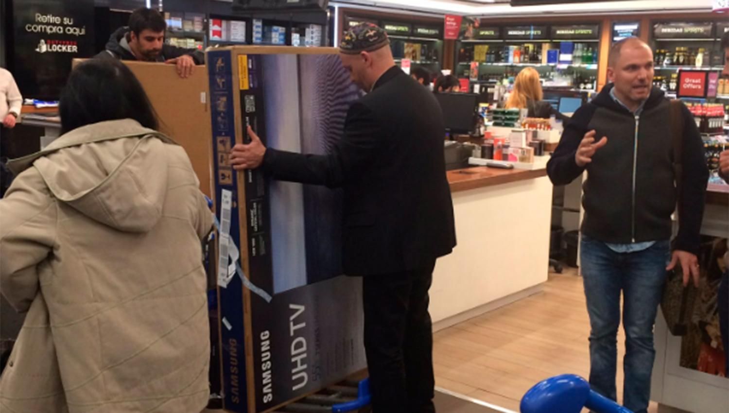 @sergiobergman en el avión. ¿Le parecerán caros en Argentina los tv? Se trajo 2