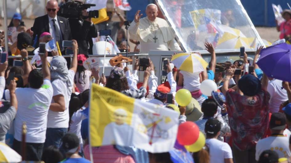 Al empezar a despedirse de Chile con el término de la misa, en la playa Lobito de Iquique, Jorge Bergoglio expresó que "quiero agradecer la presencia de tantos peregrinos de los pueblos hermanos".