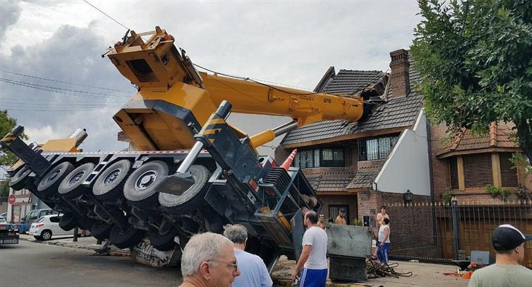 El camión que transportaba la grúa quedó semivolcado, mientras que los habitantes de la casa resultaron ilesos. Los trabajadores debieron ser hospitalizados.