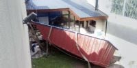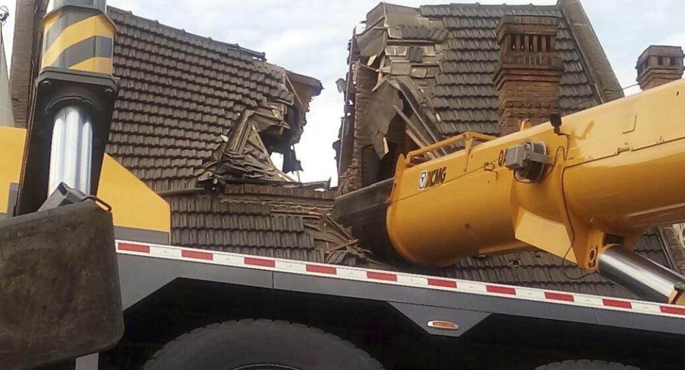 La caída de la grúa de varias toneladas de peso destrozó el techo de la casa, situada en la calle Saladillo, casi en la intersección con Pila.