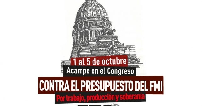“Acampe contra el Presupuesto del FMI; por Trabajo, producción y soberanía”, es la consigna que convoca al “plan de lucha” contra el proyecto del oficialismo, que consideran “de ajuste”.