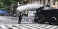 La zona del Congreso estaba copada por las manifestaciones contra el proyecto desde este martes, pero pasadas las 14:00, un grupo reducido de personas con los rostros tapados comenzó a lanzar piedras contra los efectivos y derribó algunas de las vallas que se habían montado alrededor del edificio.