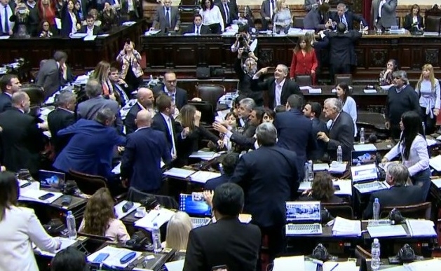 Se empantanó la sesión por el Presupuesto 2019 luego de darse una situación de máxima tensión dentro del recinto. Mientras transcurría el debate del proyecto, legisladores de la oposición más dura comenzaron a pedir a los gritos que se pasara a un cuarto intermedio por los incidentes en las afueras del Congreso.
