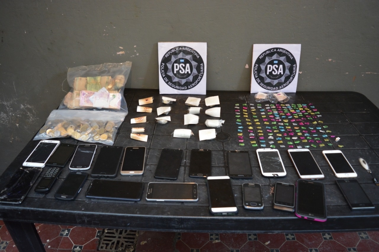 Como resultado del procedimiento, los oficiales secuestraron 111 gramos de clorhidrato de cocaína fraccionados en 11 envoltorios, 170 dosis de dicha sustancia y siete gramos de picadura de marihuana acondicionada en cinco sobres. También incautaron 16.913 pesos en efectivo; 21 teléfonos celulares; un pendrive y una notebook.