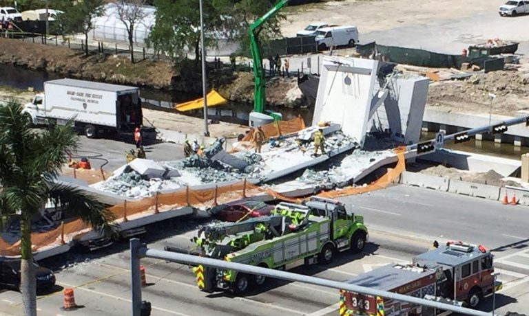 El puente, que había sido inaugurado el sábado, conectaba la Florida International University (FIU) con la localidad Sweetwater. Hay varios conductores atrapados entre los escombros, aunque no circuló información sobre posibles víctimas mortales.