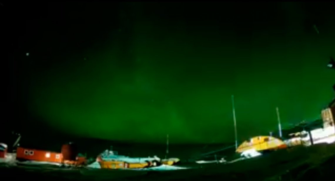Un espectáculo de auroras australes pudo apreciarse desde la Base Belgrano II de la Antártida Argentina. Las imágenes fueron publicadas por el Servicio Meteorológico Nacional en su cuenta de Twitter.