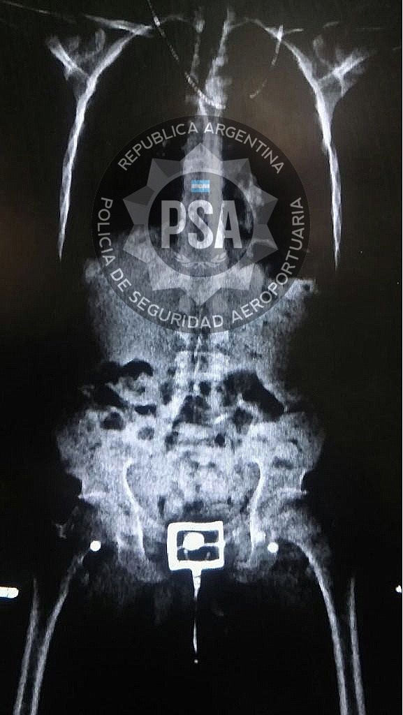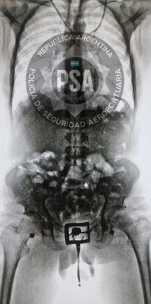 Por estos motivos, y ante la presencia de testigos, se le realizó un chequeo no invasivo mediante un equipo “body scan”, que evidenció la presencia de cuerpos extraños en el interior de su organismo. Entonces el hombre, de 32 años, confesó que llevaba “cápsulas de cocaína adentro”.