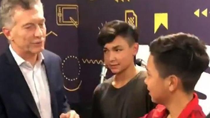 “Venía todo bien hasta que te pusiste ese buzo. Te fuiste para la B con ese buzo”, le dijo Macri al joven, burlándose del descenso del conjunto “Millonario” en 2011. “Aguante Boca”, se escucha en el fondo, que dice uno de los chicos, al final del video.