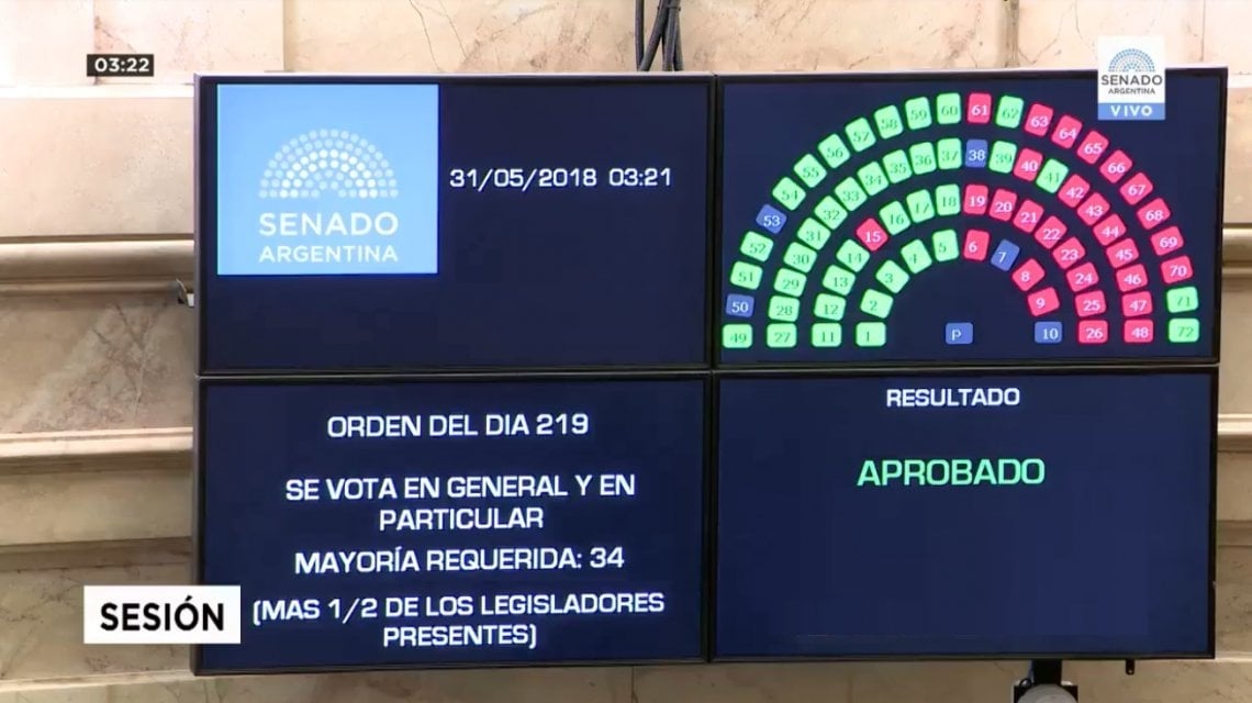El debate de la iniciativa se extendió por más de 13 horas debido a que se anotaron 51 senadores para tomar la palabra, pero se preveía que al final de la jornada se sancionara la ley con los votos del Bloque Justicialista, el Frente para la Victoria-PJ y otras bancadas satélite.