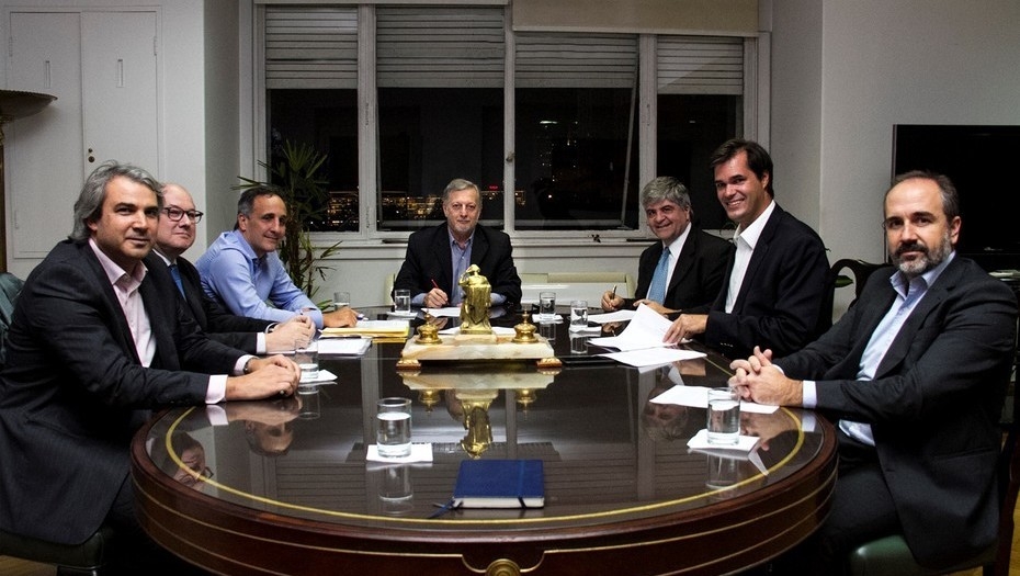 Miguel Angel Gutiérrez, presidente YPF, Teófilo Lacroze, de Shell, y Marcos Bulgheroni, director ejecutivo de Pan American Energy (PAE) se fotografiaron ayer con el ministro Aranguren, como una forma de aval de la medida, a que llaman "de excepción".