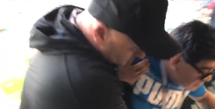Sobre el final, Maradona se peleó con hinchas que estaban cerca de su lugar y tras el festejo, se lo llevaron al palco descompensado y lo sentaron en una silla.