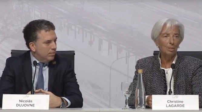 En el comienzo de las deliberaciones de la tercera reunión ministerial de Finanzas, la directora gerente del FMI Christine Lagarde dio una conferencia de prensa junto al ministro de Hacienda Nicolás Dujovne, en la que se mostró optimista sobre el futuro de la economía argentina y la evolución del acuerdo que el país celebró con el organismo un mes atrás.