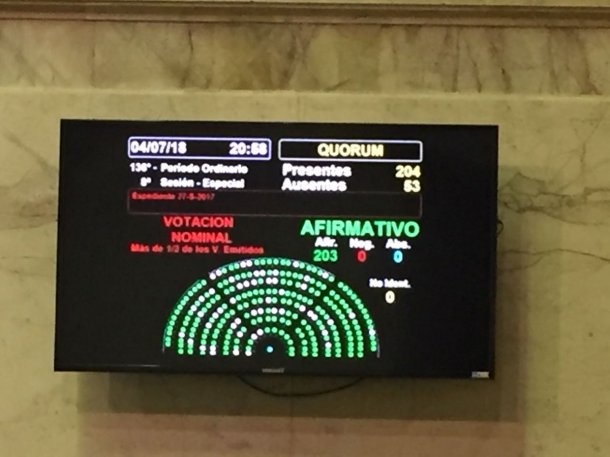 La iniciativa que otorga una reparación económica para hijos de víctimas de femicidios o del asesinato de alguno de los progenitores en manos de otro. Recibió 203 votos afirmativos y ninguno negativo.