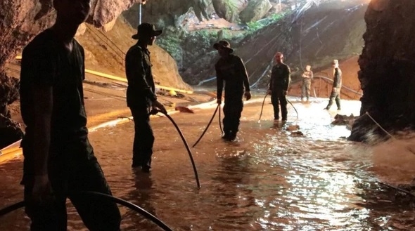 Los 12 chicos de entre 11 y 16 años y el entrenador, de 25, quedaron atrapados en la cueva cuando la visitaban tras un entrenamiento. Las fuertes lluvias que comenzaron a caer bloquearon la salida y obligaron al grupo a internarse profundamente en la cueva para huir de la inundación.