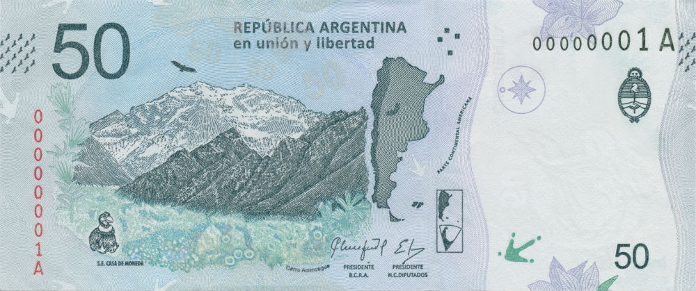 Microletra: "$50BCRA..." en la base de la silueta del cóndor andino; y "BCRA" dentro del valor "50" ubicado en el ángulo inferior derecho.