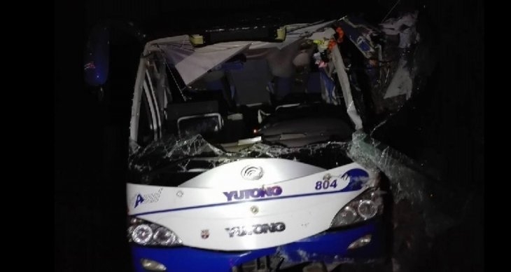 Testigos del siniestro dijeron que el ómnibus de la empresa estatal Vía Azul, que viajaba con destino a La Habana, dijeron que el vehículo se volcó luego de que el conductor perdió el control al intentar adelantar con el pavimento mojado.
