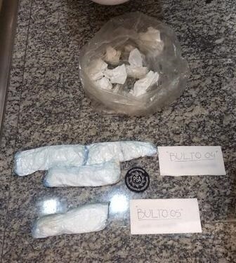 Ya en la guardia de prevención, los tres pasajeros y sus pertenencias fueron requisados por orden de la judicatura interviniente. Dentro de los cinco paquetes, los oficiales detectaron sustancia de color blanco y consistencia granulada que, sometida a reactivo químico de clorhidrato de cocaína, dio positivo. El total de lo hallado arrojó un peso de 2.995 gramos.