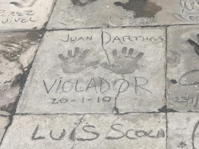 Gracias a su fama por sus papeles en novelas y sus canciones de tango, las manos y la firma de Darthés están “inmortalizadas” en una baldosa del hotel desde el 26 de enero del 2010.