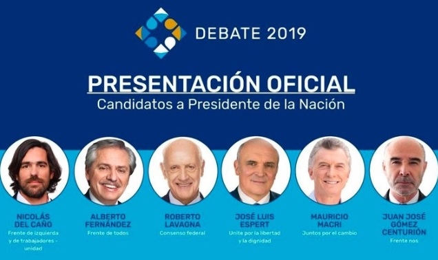 Los seis candidatos que se verán las caras todos juntos por primera vez son el presidente Mauricio Macri (Juntos por el Cambio), Alberto Fernández (Frente de Todos), Roberto Lavagna (Consenso Federal), Nicolás del Caño (FIT), José Luis Espert (Unite por la Libertad y la Dignidad) y Juan José Gómez Centurión (Frente NOS).