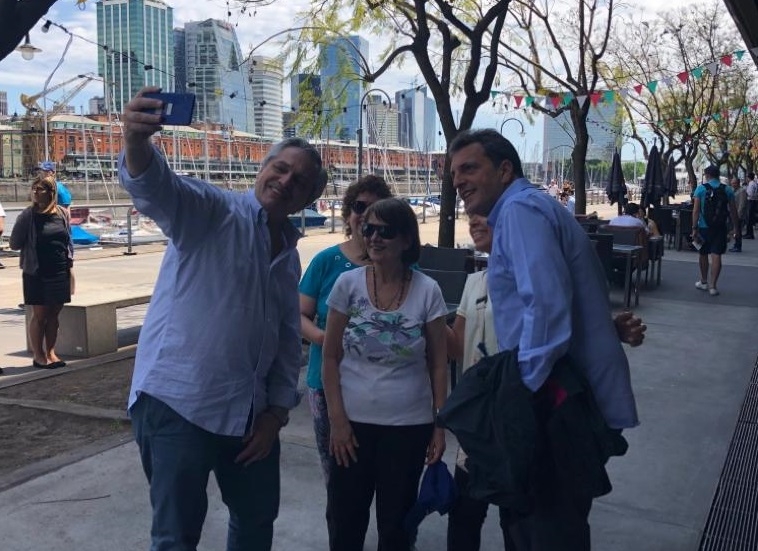 Durante la caminata, Fernández y Mazza compartieron selfies con vecinos y circunstanciales transeúntes de la zona, donde vive el candidato peronista.