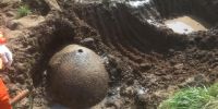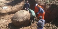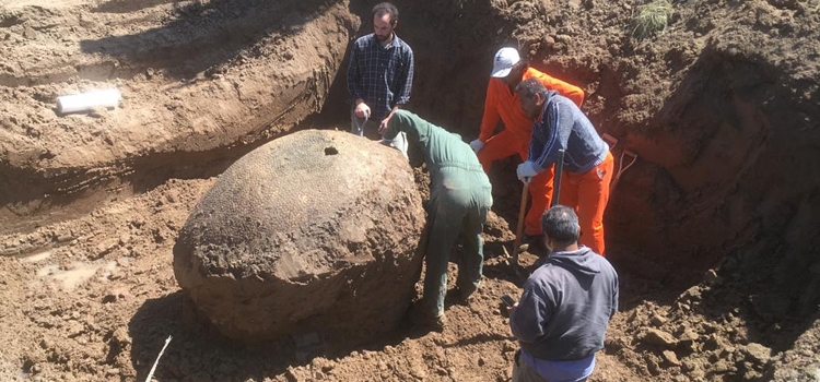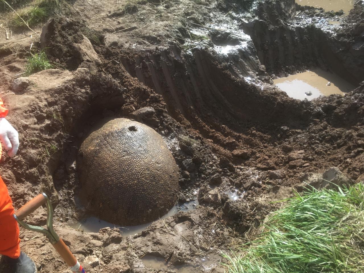 Se encontró la coraza y puede que haya más fósiles de sus huesos dentro del bochón de este armadillo gigante extinto que pesó más de 1000 kilos en vida.