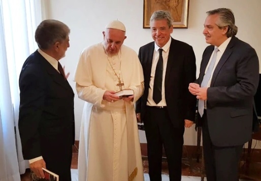 De hecho, la pareja del Presidente, Fabiola Yáñez, se reunió hoy con el Papa en el contexto de un encuentro mundial de la inauguración de la sede de la organización pontificia Scholas Ocurrentes y le llevó el cáliz que se utilizó el domingo pasado en la misa de Luján, donde Fernández y Macri compartieron el saludo de la paz. La mujer del Presidente le llevó el mensaje del Gobierno de acercar posiciones con la Iglesia y manifestó que Alberto Fernández espera un diálogo permanente con la Iglesia.