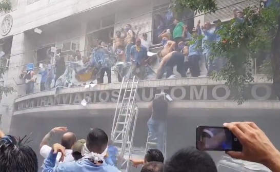 Los choferes tomaron 4 pisos del gremio, rompieron vidrios y destrozaron las oficinas