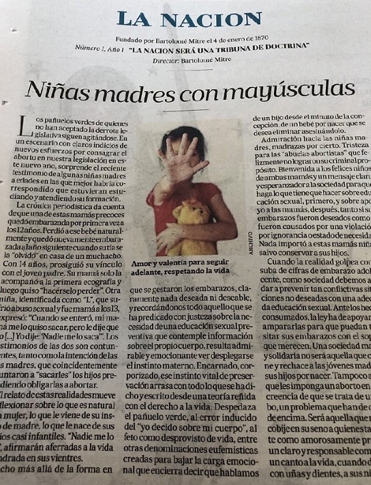 La nota del diario La Nación titulada “Niñas madres con mayúsculas” generó el repudio de muchas personas que se expresaron en las redes sociales en contra de lo expuesto por la línea editorial del artículo, en la cual apoya la maternidad infantil sin importarle los casos en donde ésta sea forzada por una violación.