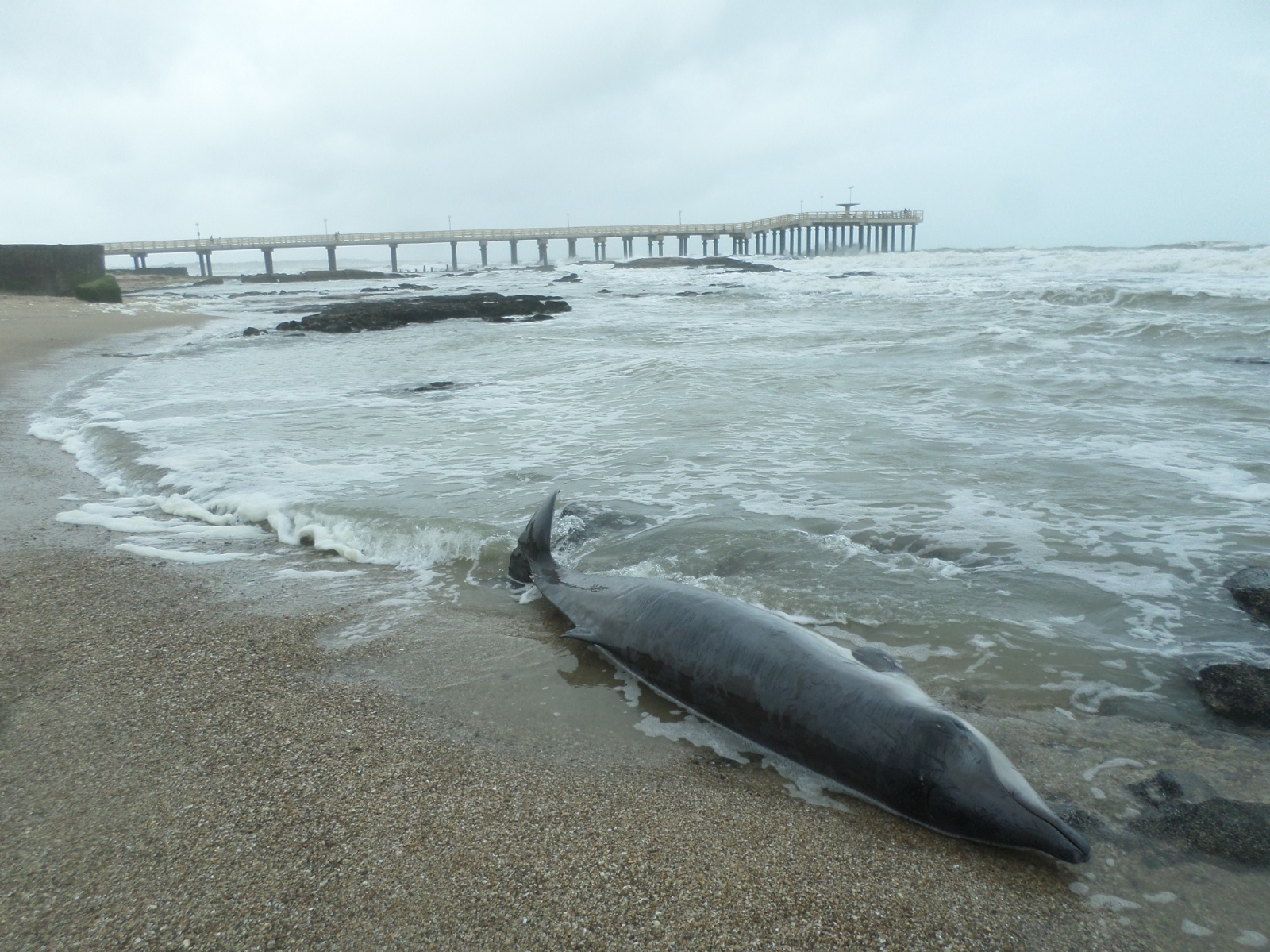 A mediados de este mes, los paseantes del sector de Punta Hermengo, entre el muelle y la entrada al bosque, lugar conocido ampliamente a nivel mundial por el hallazgo de las huellas del tigre dientes de sable “Felipeda miramarensis”, fue noticia nuevamente, pero no por hallazgos paleontológicos, sino porque apareció muerto un raro cetáceo, lo que generó confusión al comienzo para su identificación.