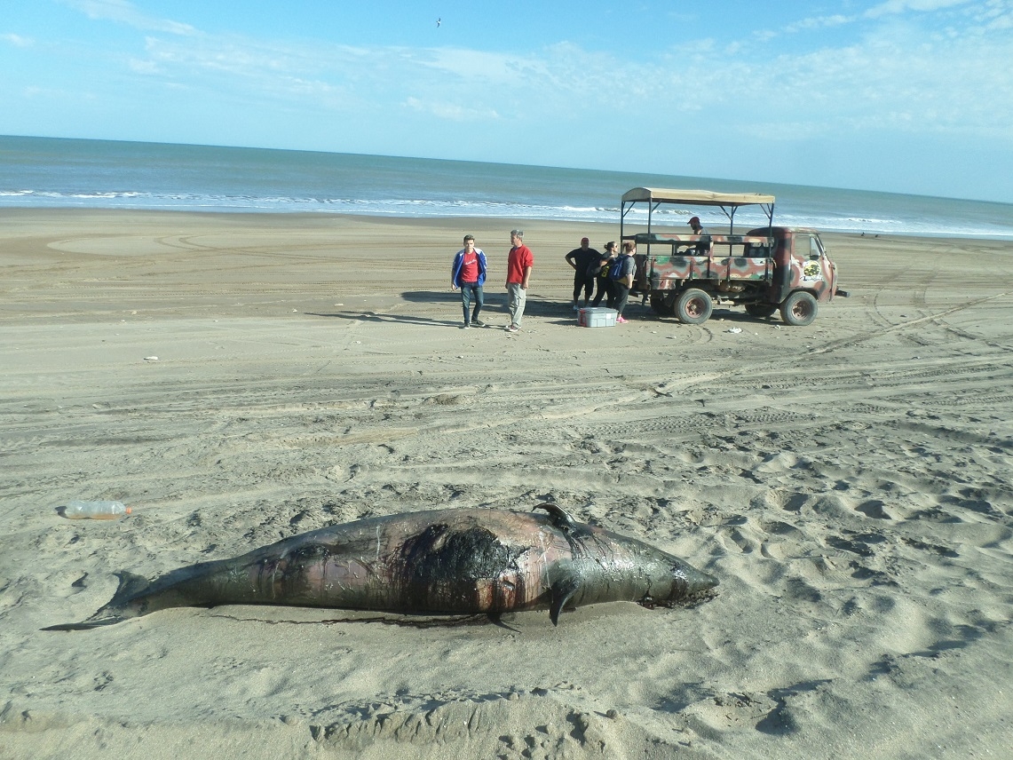 Debido a esto se pusieron en contacto científicos del Grupo de Investigación “Biología, ecología y conservación de mamíferos marinos” del Instituto de Investigaciones Marinas y Costeras de la Universidad de Mar del Plata y Conicet: Lic. Carolina De León, Dra. Andrea Elissamburu y Lic. Ramiro Bagnato, quienes realizaron la necropsia en el lugar junto al personal del museo miramarense..