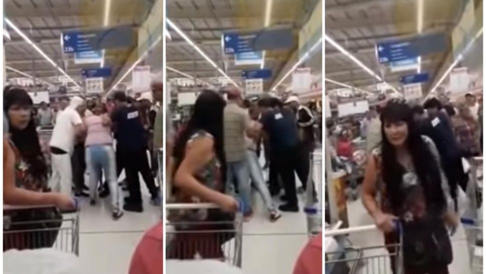 Según consta en las imágenes, las personas se abalanzaron sobre el changuito donde el repositor llevaba la oferta de milanesa de nalga a $212. Cuando se llevaron las bandejas, quedó una sola por la cual varios hombres y mujeres se trenzaron en una feroz pelea.